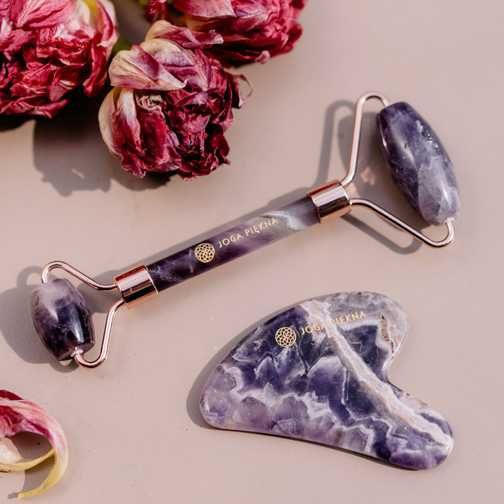 Zestaw do masażu: roller, GuaSha | ametystMassage kit: roller * Gua sha * Amethyst