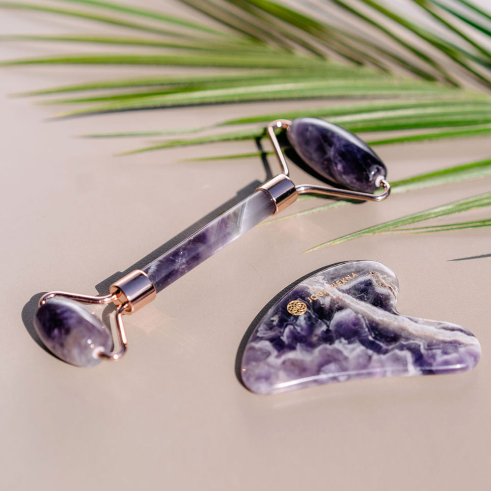 This one of the most elegant facial massage kits, which is perfect gift idea. The roller and gua sha are made of natural amethyst.
