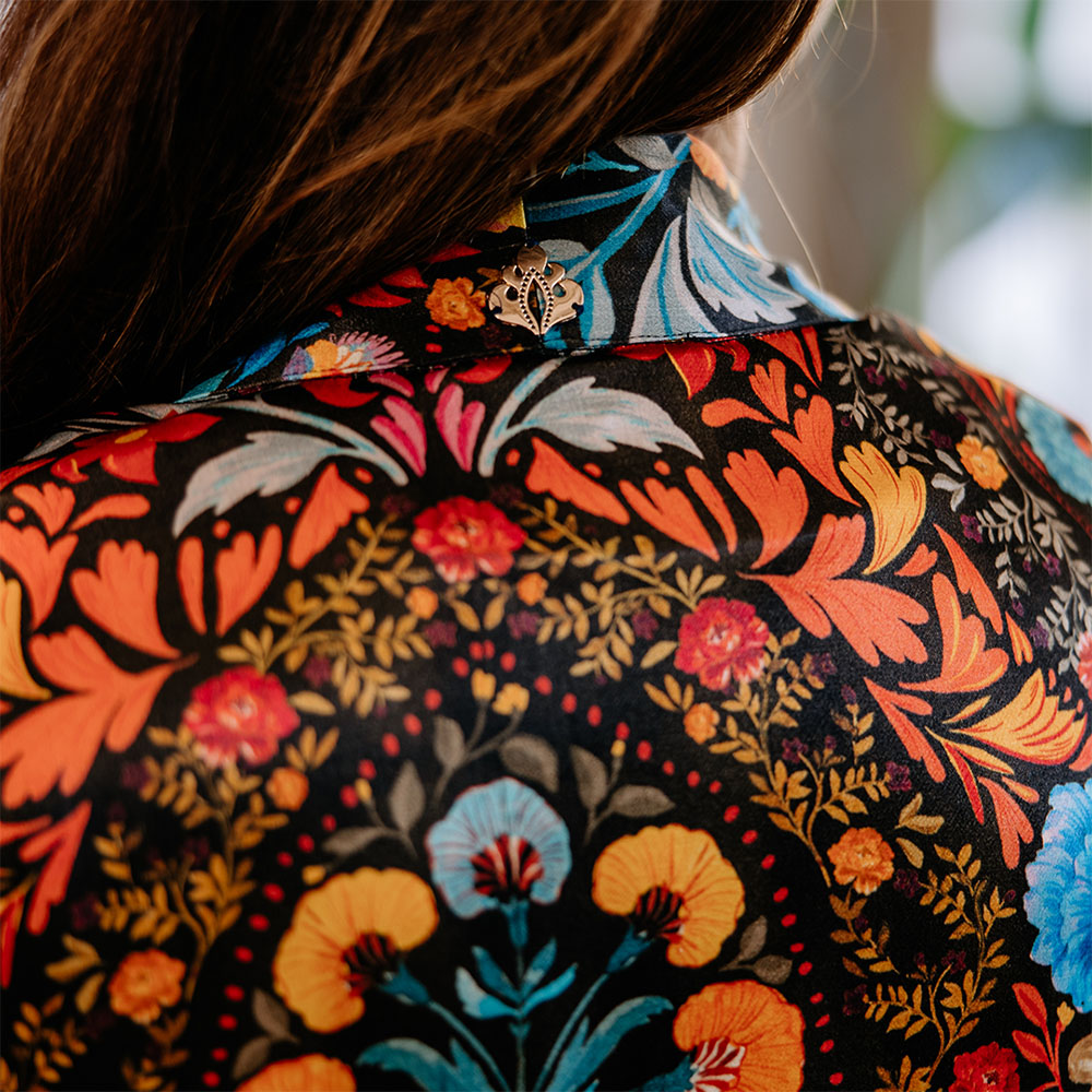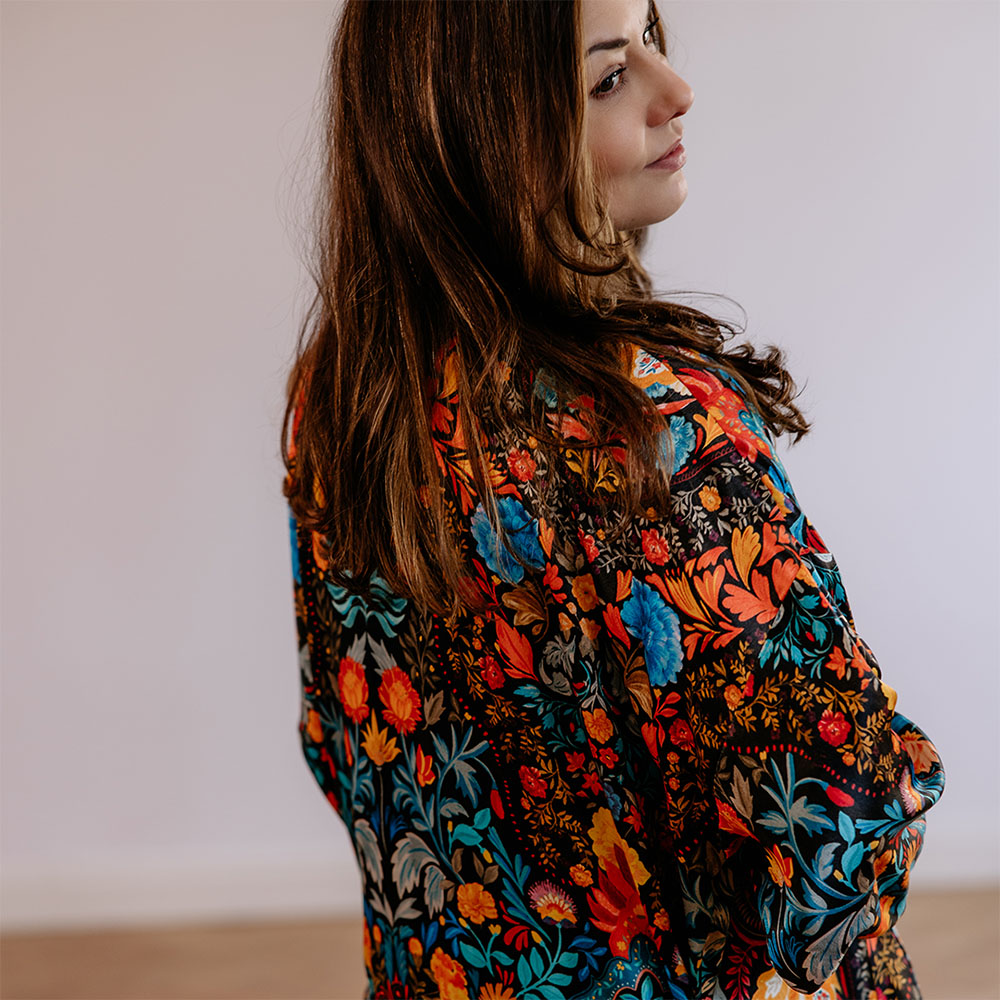 Kimono SHANTI to połączenie elegancji, wygody i unikalnego, wyrazistego stylu. Jego projekt zrodził się z pasji do zmysłowych, kobiecych ubrań, które łączą estetykę z komfortem noszenia.