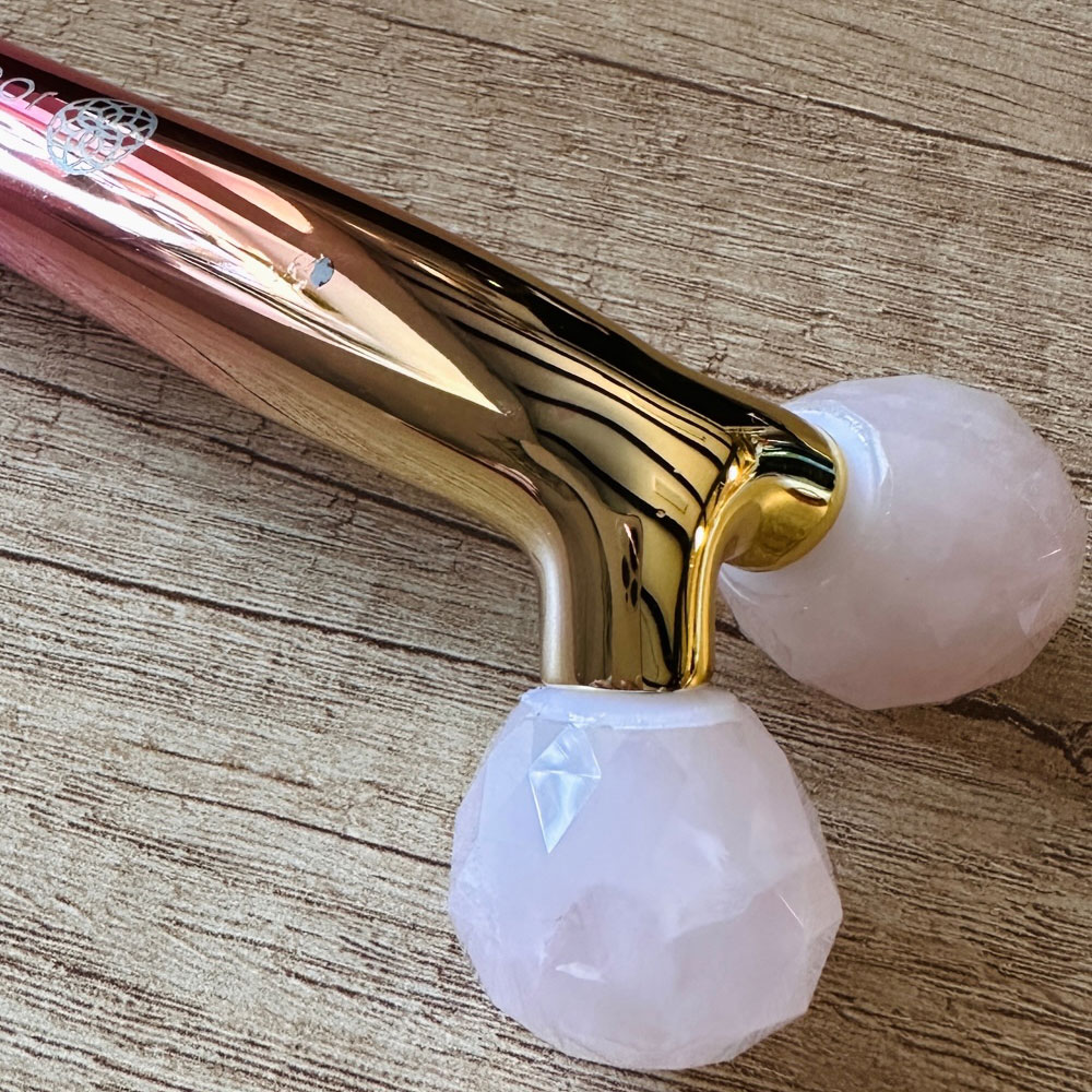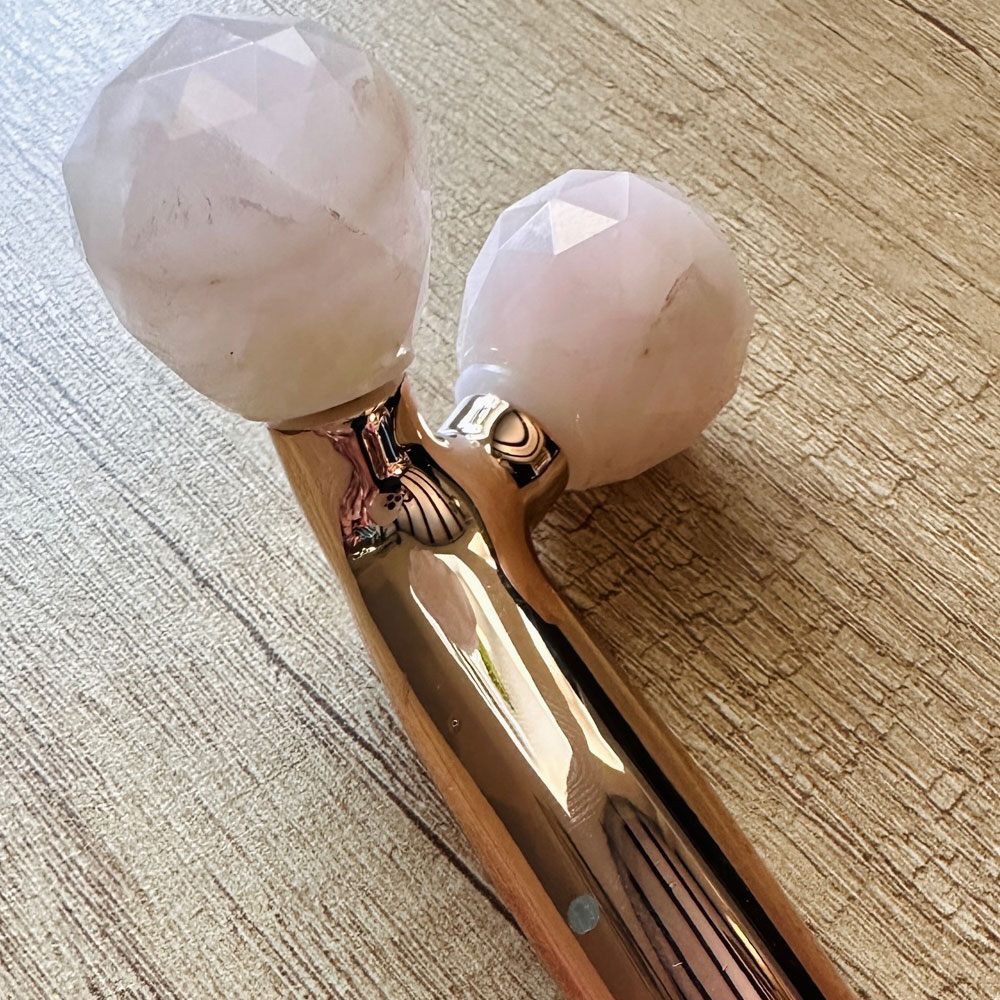 Masażer do twarzy 3D z kwarcem to naprawdę solidny, luksusowy produkt. Rączka wykonana jest barwionej, eleganckiej stali nierdzewnej. Obrotowe kule to naturalny, różowy kwarc, nazywany kamieniem miłości. To idealny pomysł na prezent dla wymagających kobiet — miłośniczek naturalnej pielęgnacji, które przykładają dużą wagę do detali.