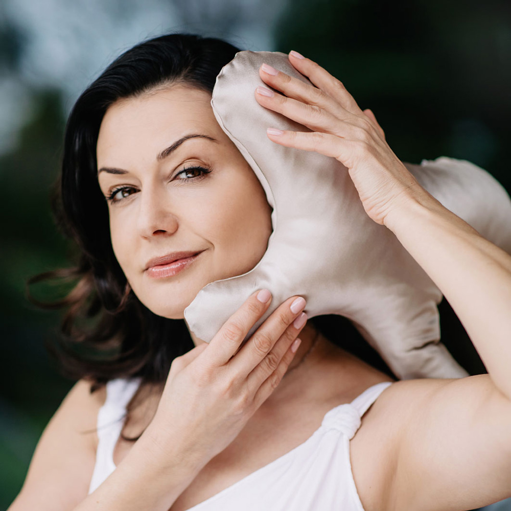 Jeśli szukasz poduszki, która będzie wspierać Twoją codzienną pielęgnację, masaże i troskę o dobrą kondycję skóry i włosów — jesteś w doskonałym miejscu. Zaprojektowałam MINI poduszkę, która jednocześnie eliminuje problem zmarszczek sennych, doskonale podpiera odcinek szyjny Twojego kręgosłupa, dbając przy tym o cerę i włosy.