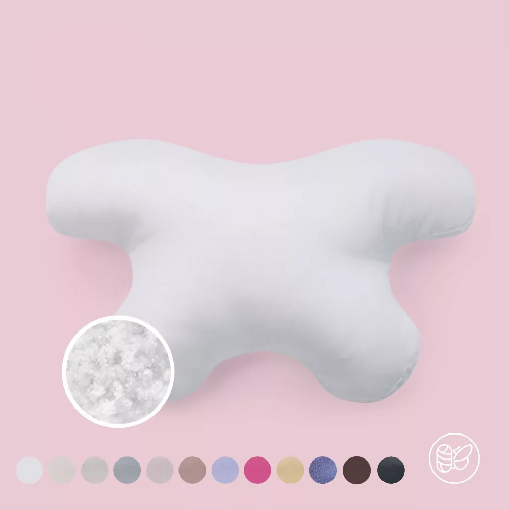 Poduszka antyzmarszczkowa Bye Bye Wrinkles ma komfortowy, ergonomiczny kształt motyla. Jej optymalna wielkość sprawia, że podczas snu twarz nie przesuwa się w inne miejsce, a przy przekręcaniu głowy na bok — skóra jest stale chroniona przed zagnieceniami.