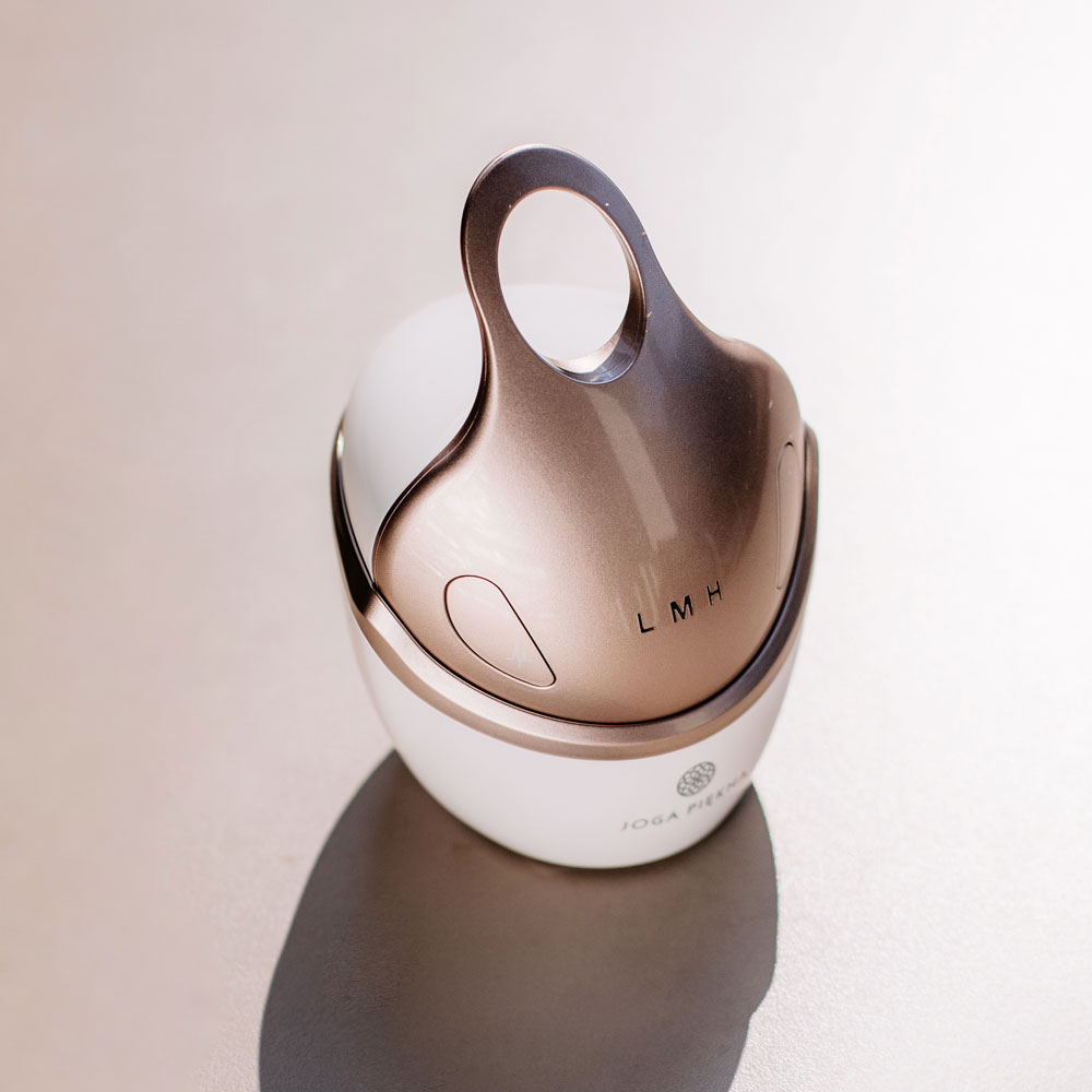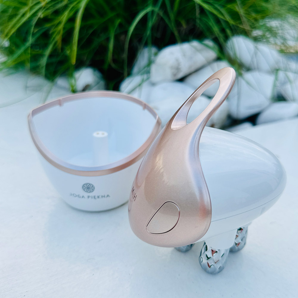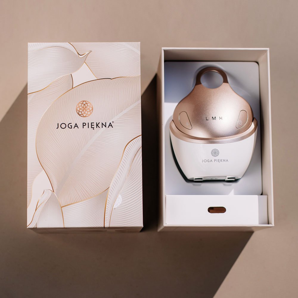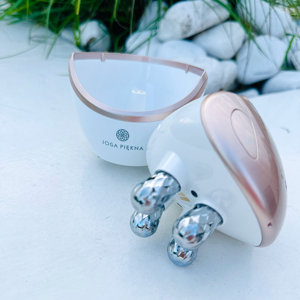 Masażer wielofunkcyjny Joga Piękna Premium jest wyposażony w 4-wymiarowe głowice masujące i 4 diody LED. Umożliwia stymulację skóry na 3 poziomach intensywności — od relaksu po silnie liftingujący masaż, który pobudza syntezę kolagenu i elastyny.