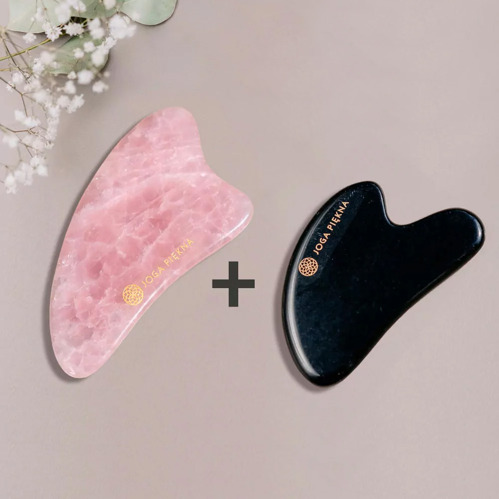 Zestaw Gua-Sha: duży kwarc różowy + mały czarny obsydianDostępność: Na stanie