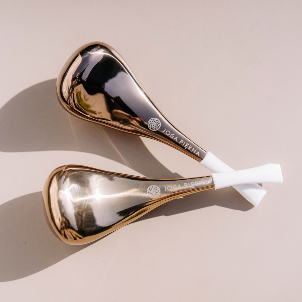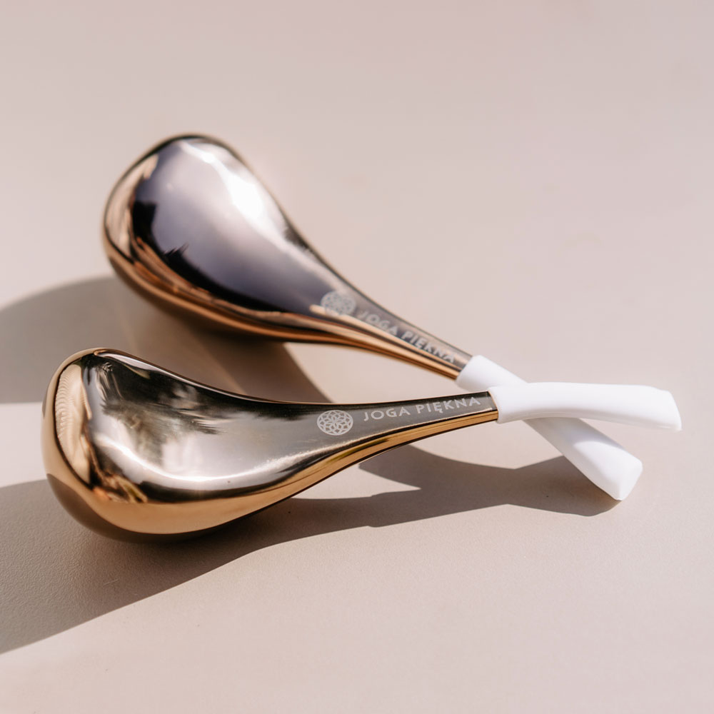 Wykonane ze stali nierdzewnej łyżki do masażu w kolorze różowego złota dbają o jędrność skóry, wygładzają drobne linie mimiczne i nocne odgniecenia, sprawiają, że cera staje się promienna i dotleniona. Twarz po takim porannym zimnym masażu jest gotowa na przyjęcie ochronnego kremu oraz lekkiego makijażu, który utrzyma się na skórze o wiele dłużej.